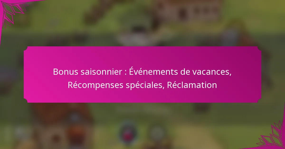Les bonus saisonniers dans Seven Knights Idle Adventure offrent des récompenses uniques lors des événements de vacances, améliorant votre expérience de jeu avec des objets et de la monnaie exclusifs. Des événements comme Noël, Thanksgiving et le Nouvel An offrent des incitations spéciales à la participation, en faisant des occasions passionnantes pour les joueurs. Pour…