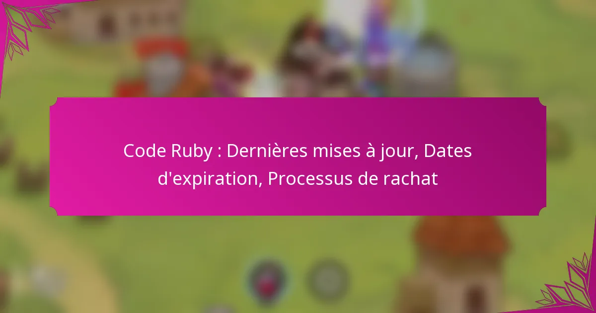 Restez informé des dernières mises à jour concernant les Codes Ruby, qui incluent de nouvelles fonctionnalités et des changements visant à améliorer l’expérience utilisateur et à clarifier le processus de redemption. Il est essentiel d’être conscient des dates d’expiration associées à ces codes pour garantir une redemption dans les délais. Pour utiliser un Code Ruby,…