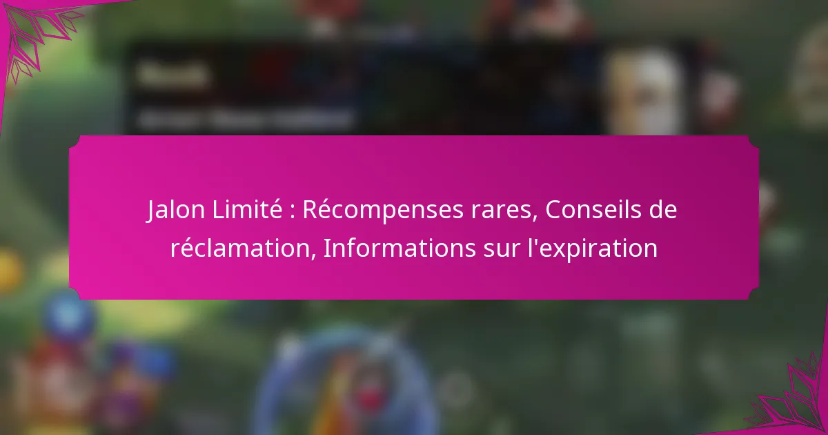 Les événements Milestone Limités offrent aux joueurs la possibilité de gagner des récompenses rares qui sont exclusives et souvent plus précieuses que les prix standards. Pour réclamer ces récompenses avec succès, il est important de suivre des étapes spécifiques et de respecter les délais. De plus, chaque récompense a une date d’expiration, il est donc…